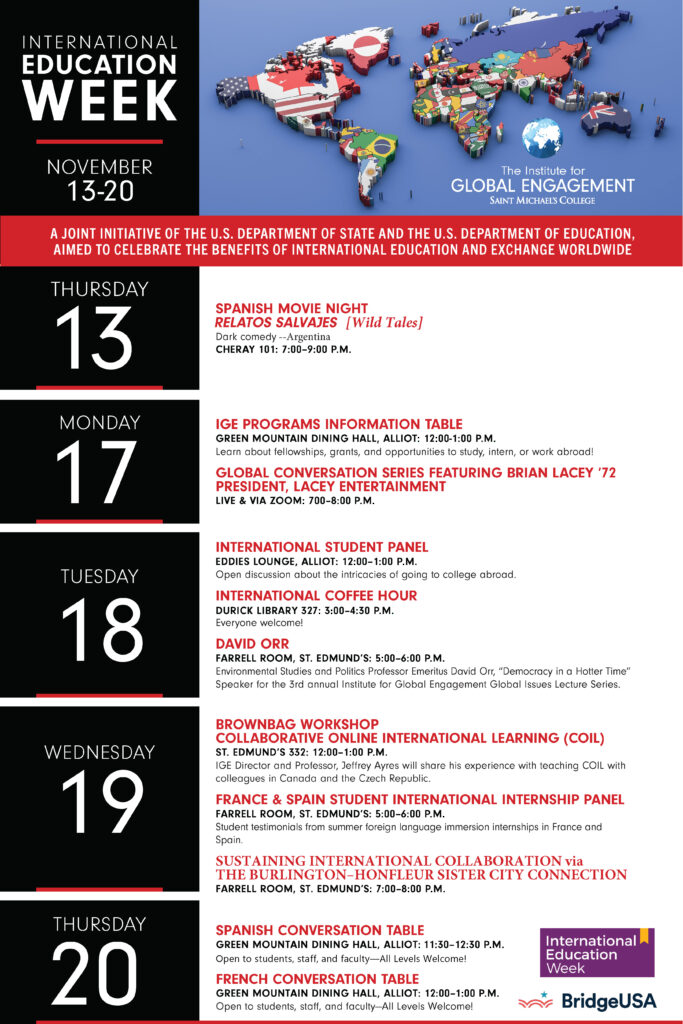 When: November 19, 7-8pm Where: Farrell Room, St. Edmund’s Hall, 3rd fl., Saint Michael’s College Info: Beth Brodie at bbrodie@aflcr.org